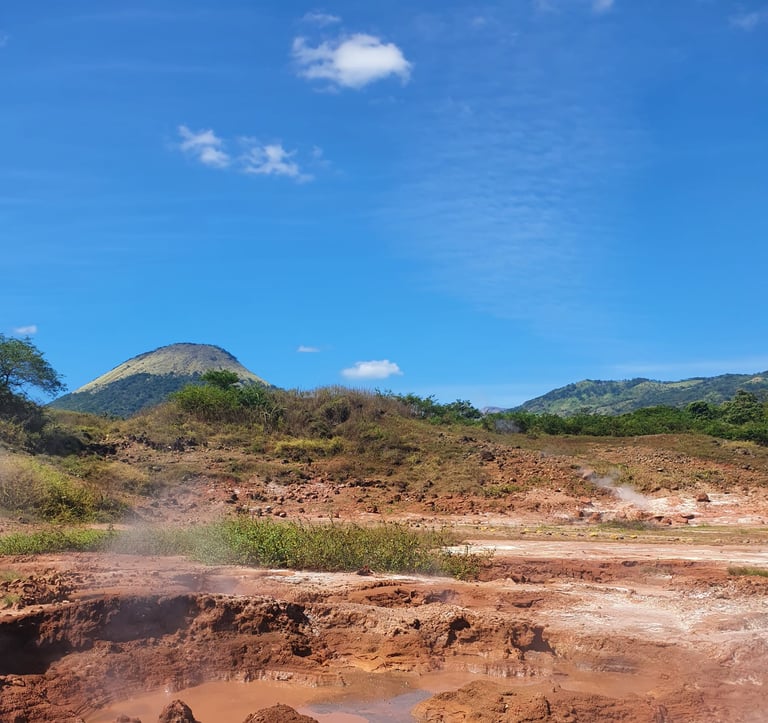 Located about 20 kilometers from León, near the Telica volcano, Los Hervideros is a hidden treasure to be discovered, archaeological territory where you can observe evidence of our ancestors. A complex of approximately 30 small craters with gas emanations and burning mud. This site is an expression of the volcanic magma found at about 3,000 meters deep, offering a geological spectacle in the midst of a rural community with a fascinating culture and history. Here, small archaeological remnants of our indigenous identity are still present, creating a unique blend of fire and archaeology.